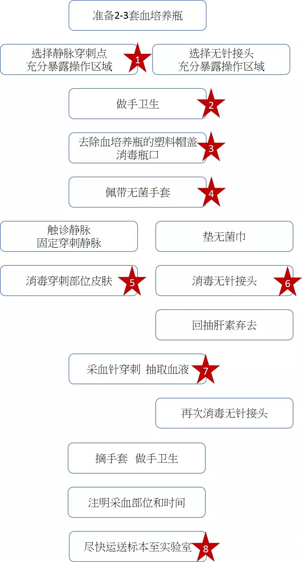 上面是一个常见的流程表,包含了"外周血"跟"导管血"两种采血方式,接下来我们一段一段来分析。